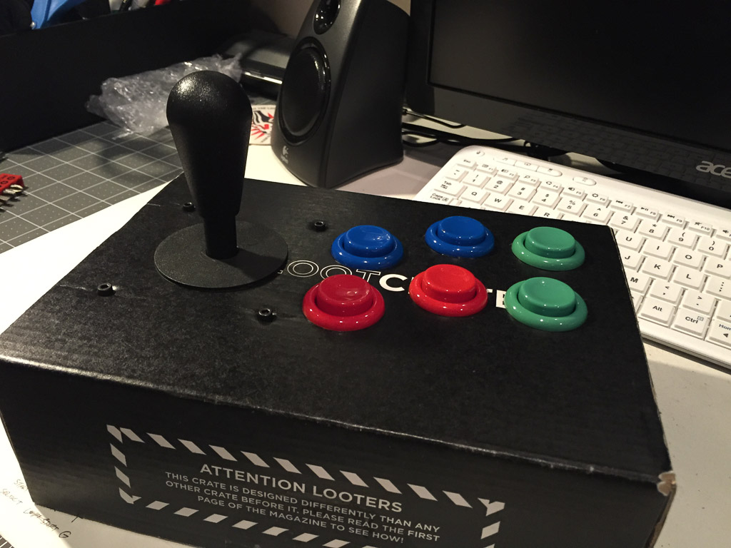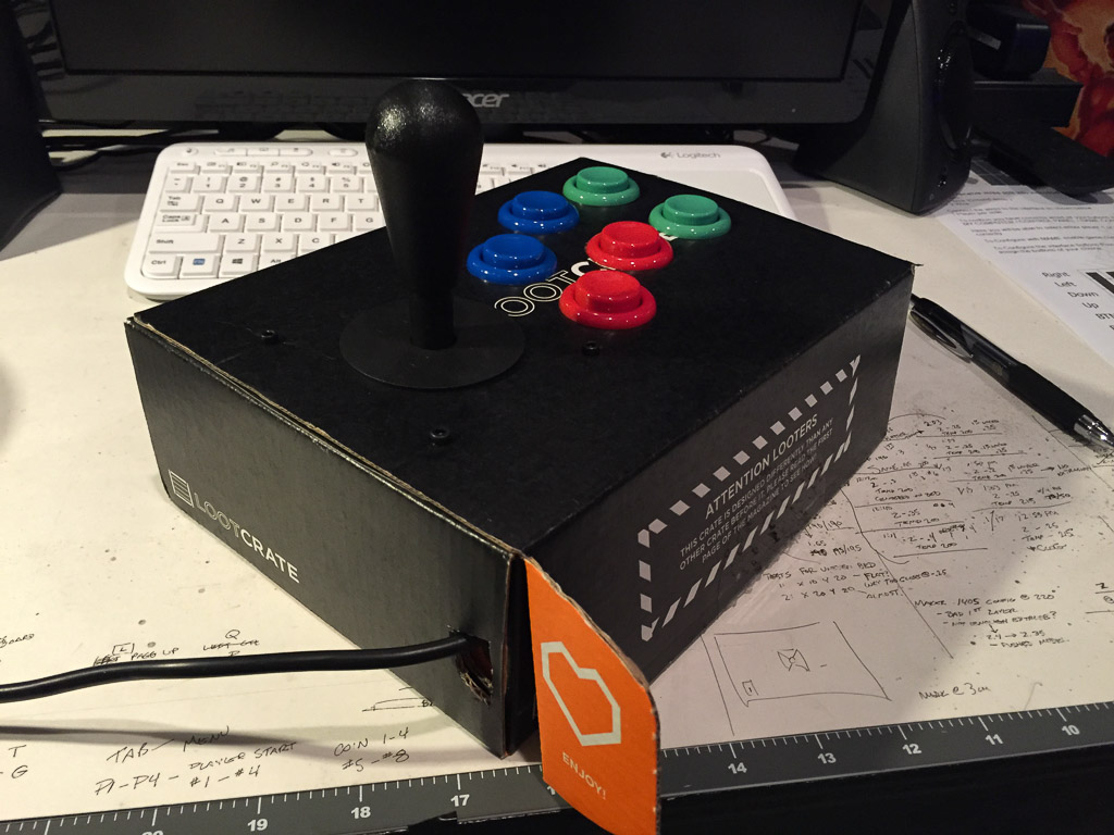 Creating a prototype MAME arcade joystick and buttons for an eventual bartop arcade machine. Thanks for the box, Loot Crate.